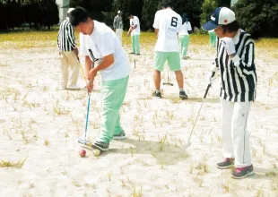 高齢者の方々に好まれる「ゲートボール」の講習を受講し、3級審判員の資格を取得します。元気な高齢者の方々より指導を受ける時間はとても貴重なひとときです。